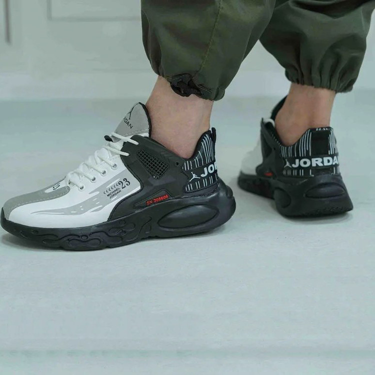 کتونی پیاده روی مردانه مدل جردن 23 رنگ سفید دارای طراحی خاص از بستکتبالیست معروف آمریکایی مایکل جردن است.