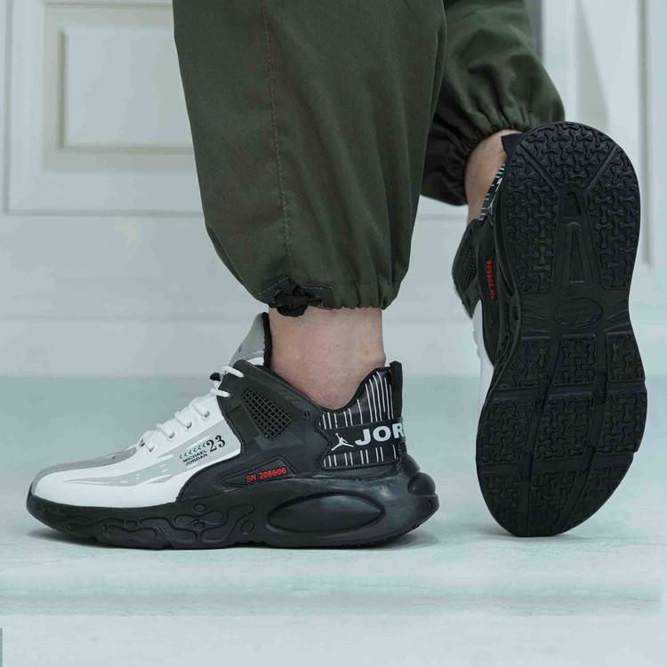 کفش اسپرت مردانه مدل JORDAN23 رنگ سفید مشکی دارای طراحی خاص از بستکتبالیست معروف آمریکایی مایکل جردن است.