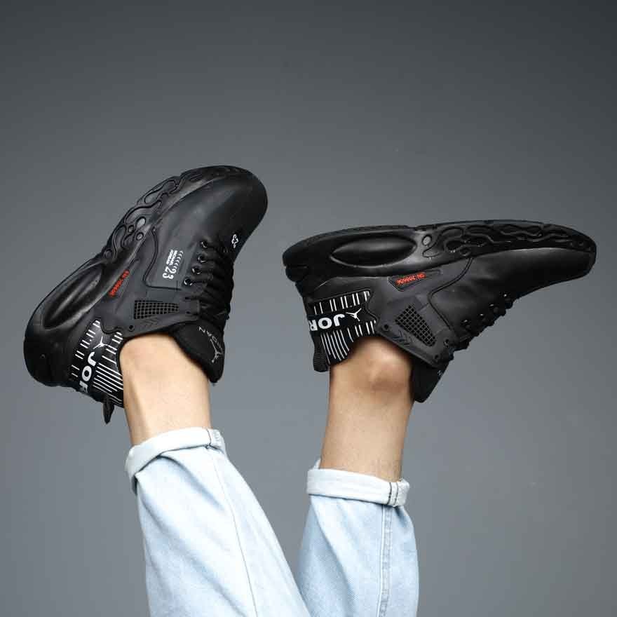 کتونی جردن 23 رنگ مشکی سایز 41 تا 44 دارای طراحی خاص از بستکتبالیست معروف آمریکایی مایکل جردن است.