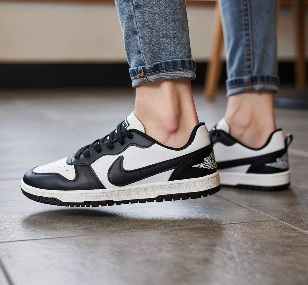 کتونی مردانه نایک جردن 1 پاندا تولید ملی با رنگ ترکیبی مشکی و سفید دارای طراحی خاص و منحصر بفردی است.