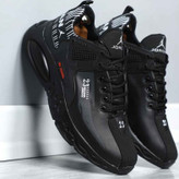 رویهی کتونی نایک جردن 23 سایز 41 تا 44 رنگ مشکی از چرم مصنوعی وارداتی ساخته شده و برشهای متنوع روی چرم، جذابیت آن را دوچندان کرده است.